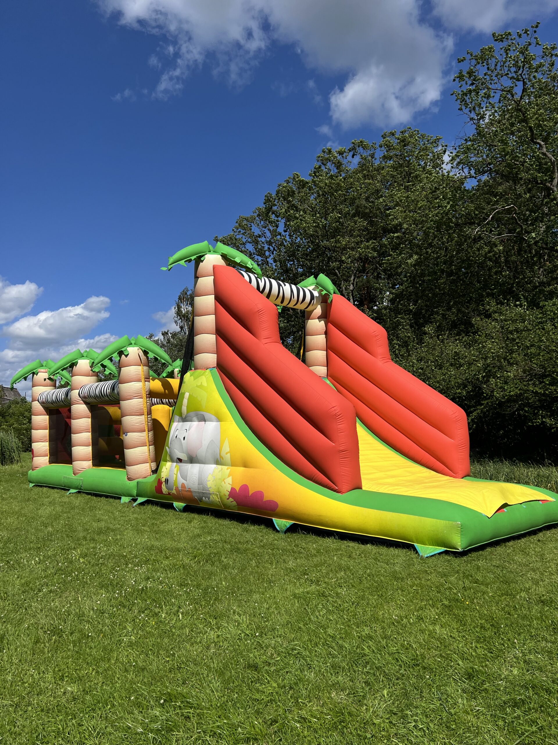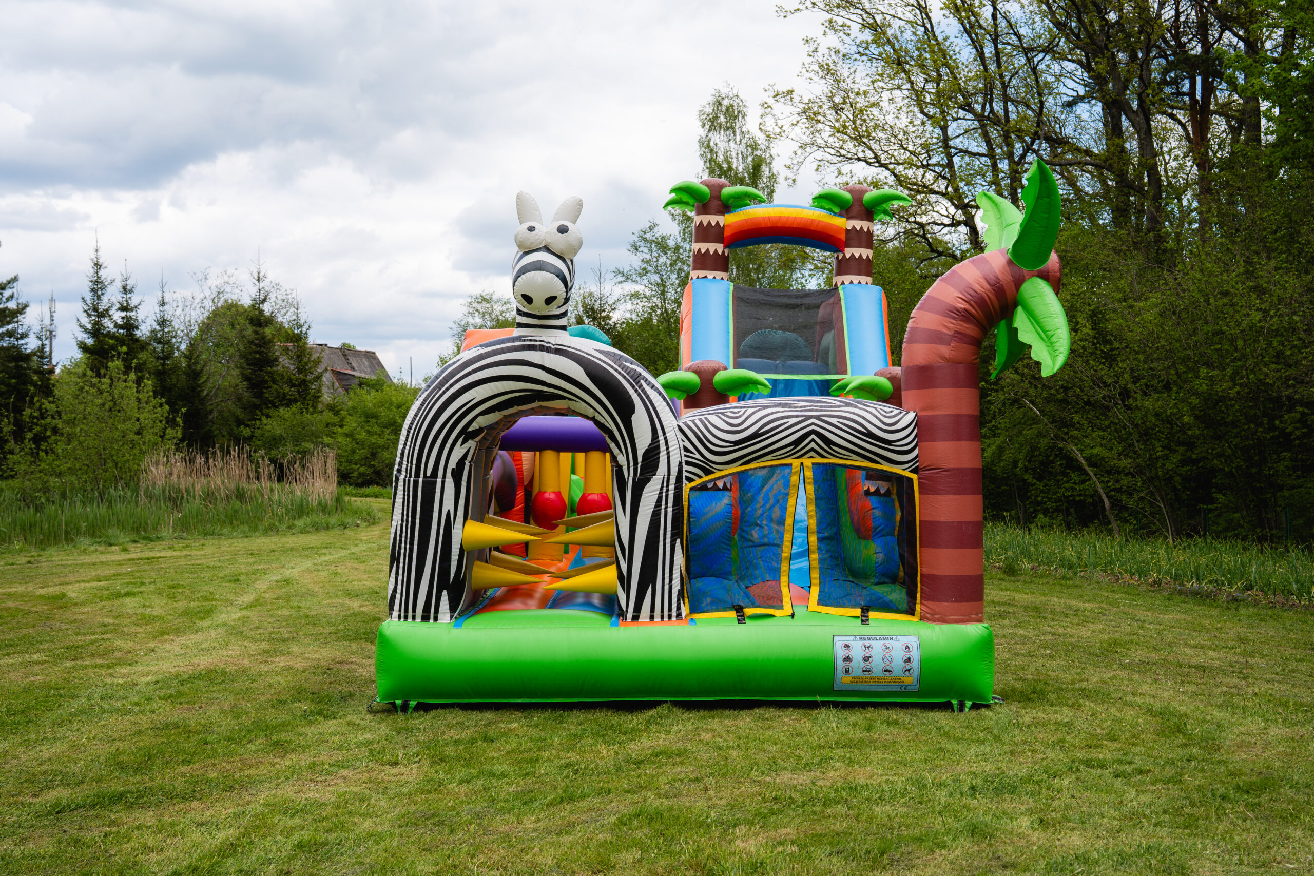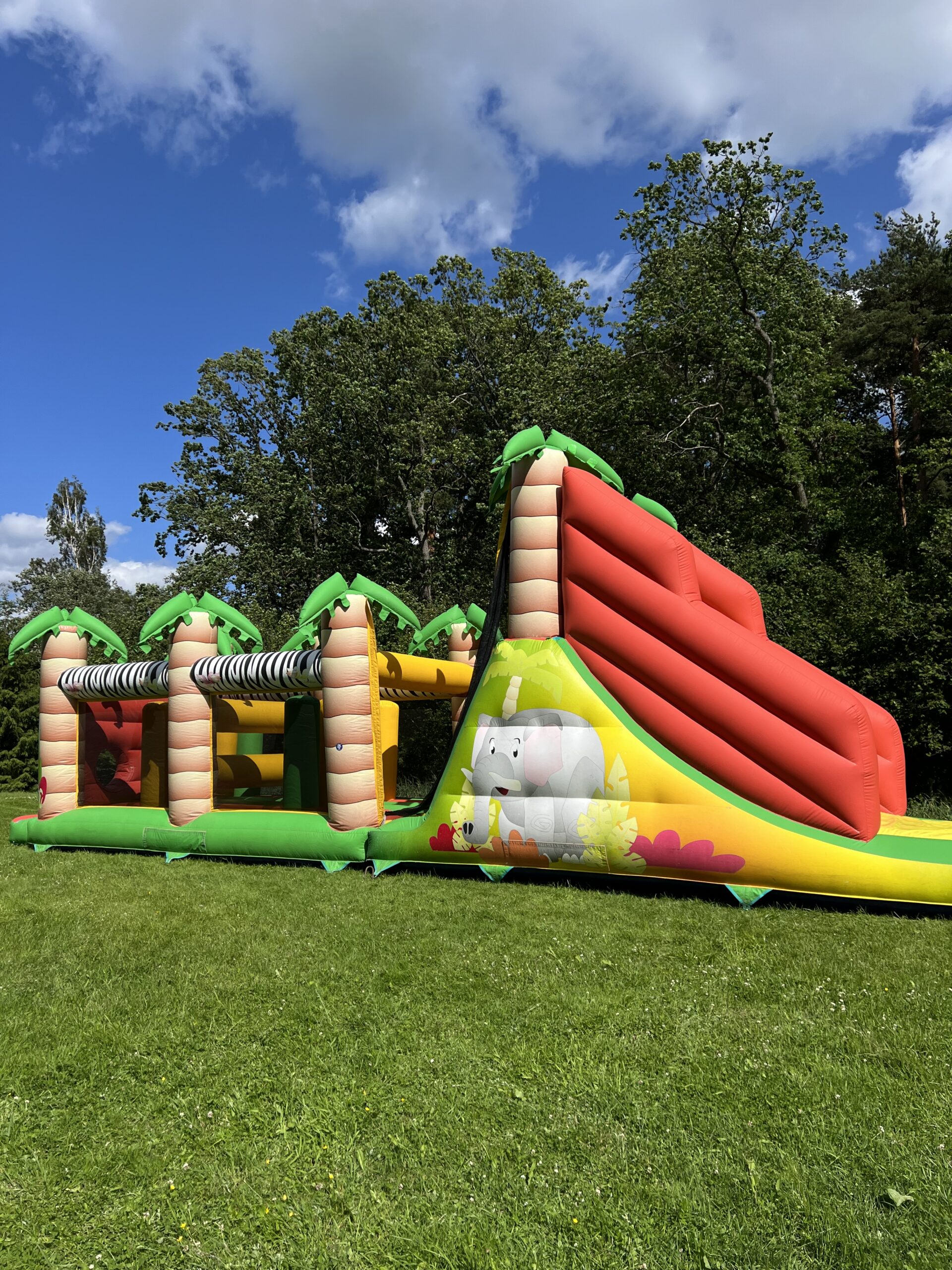 Īsts piedzīvojums džungļu pasaulē. Bērniem būs īsta izdzīvošanas spēle jautrajos džungļos, ar visām jautrajām aktivitātēm- rāpšanos, šļūkšanu, lekšanu, kūleņošanu un daudz citu jautru aktivitāšu. Atrakcijai iespējams apskriet uz rinķi, tadēļ to var izmantot kā stafeti sacensībās. Atrakcijas garums 9m, platums 4.5m un augstums 4m.
