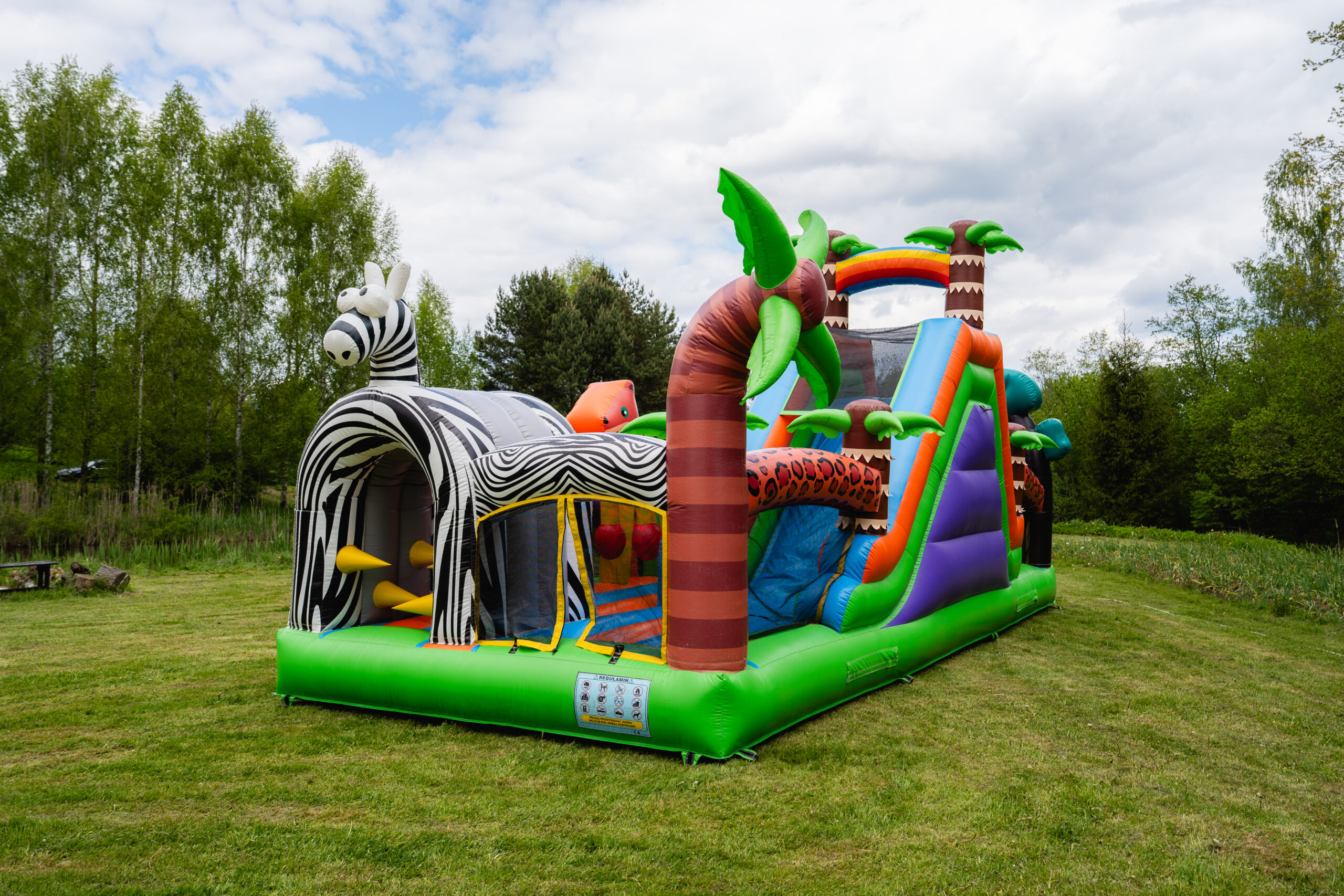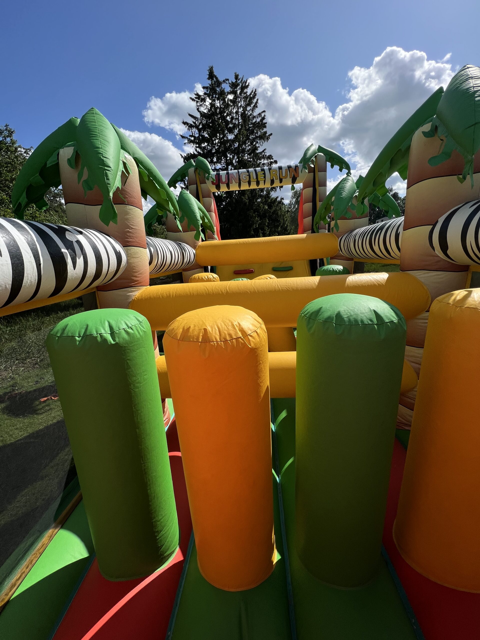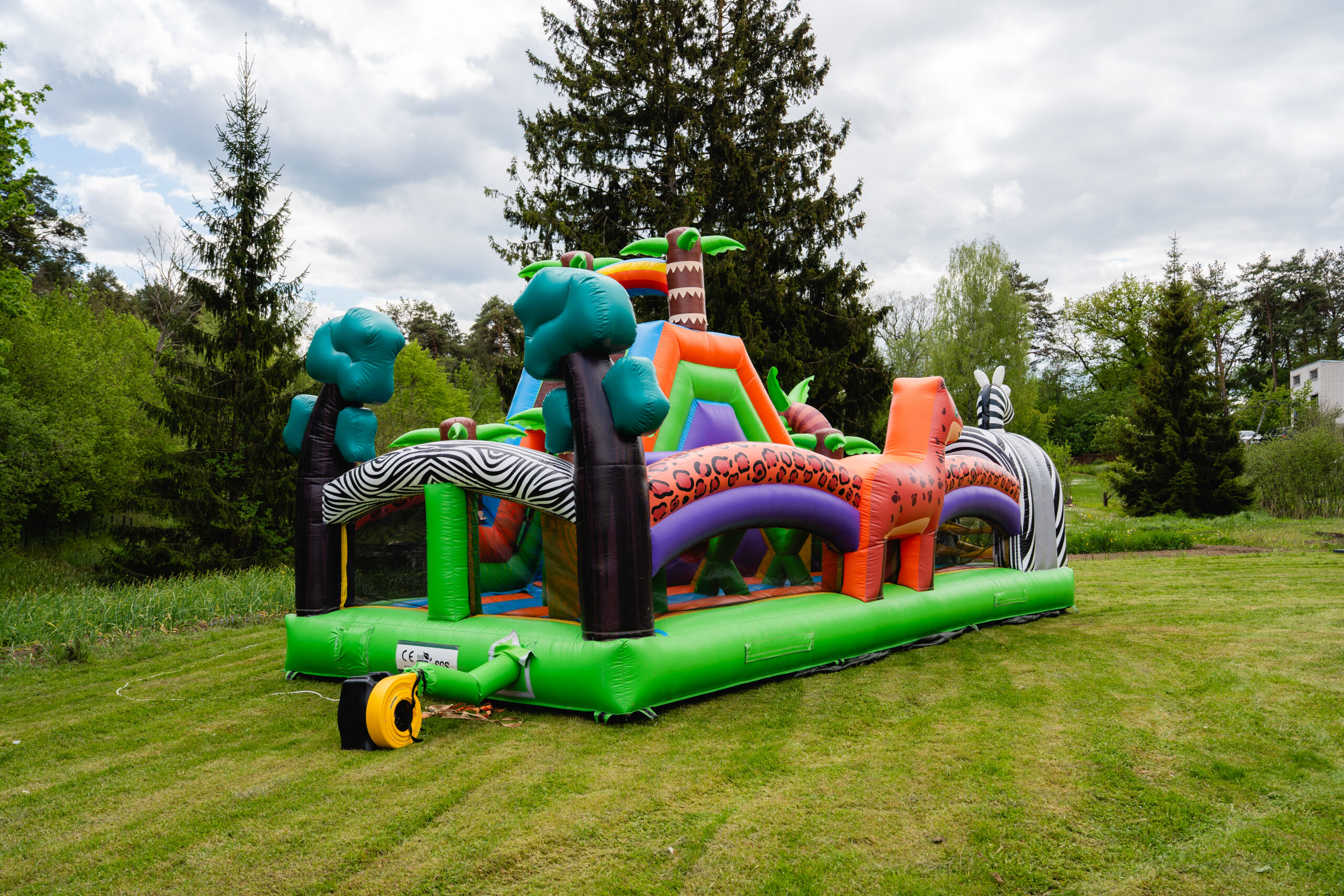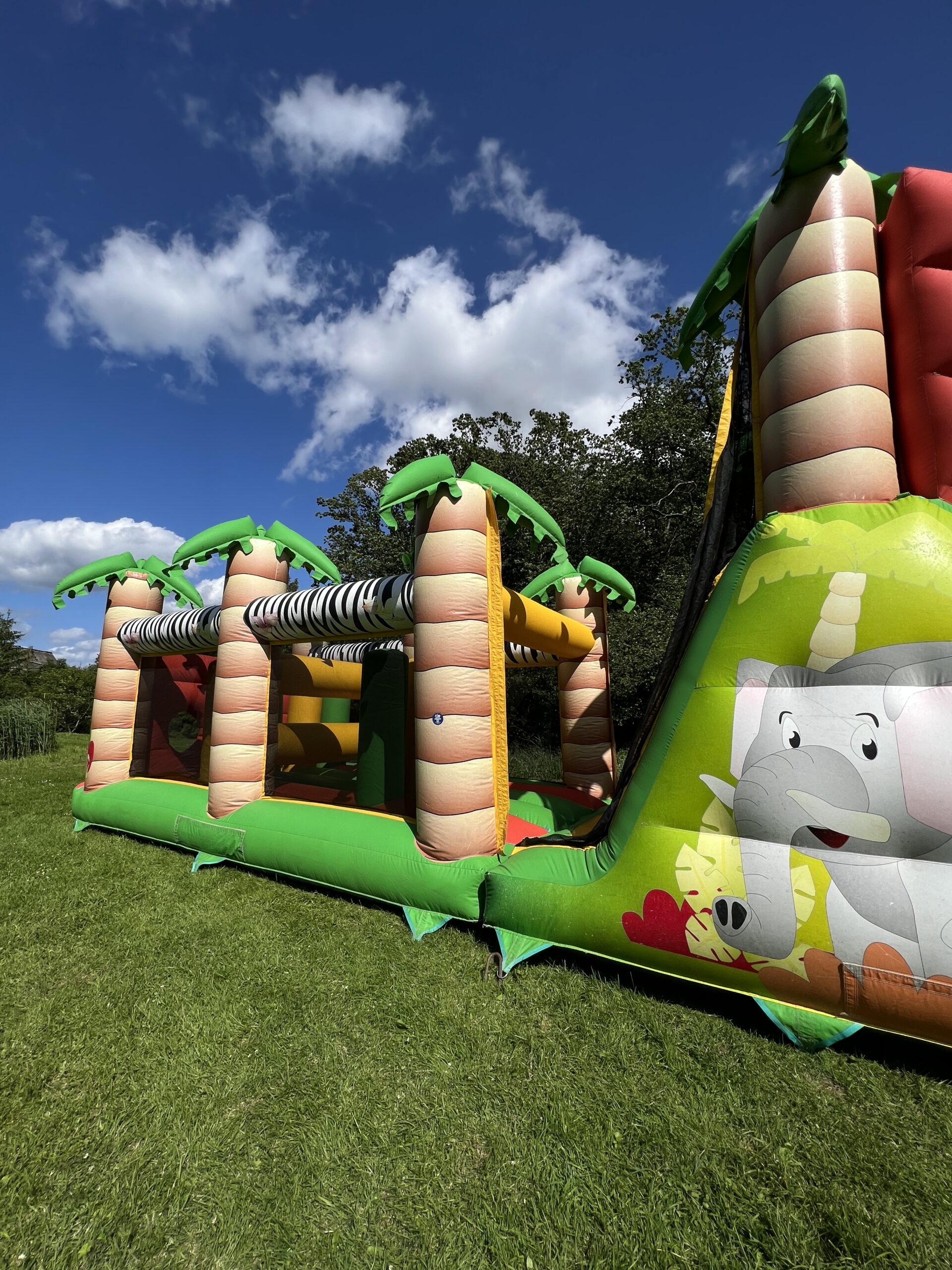 Īsts piedzīvojums džungļu pasaulē. Bērniem būs īsta izdzīvošanas spēle jautrajos džungļos, ar visām jautrajām aktivitātēm- rāpšanos, šļūkšanu, lekšanu, kūleņošanu un daudz citu jautru aktivitāšu. Atrakcijai iespējams apskriet uz rinķi, tadēļ to var izmantot kā stafeti sacensībās. Atrakcijas garums 9m, platums 4.5m un augstums 4m.