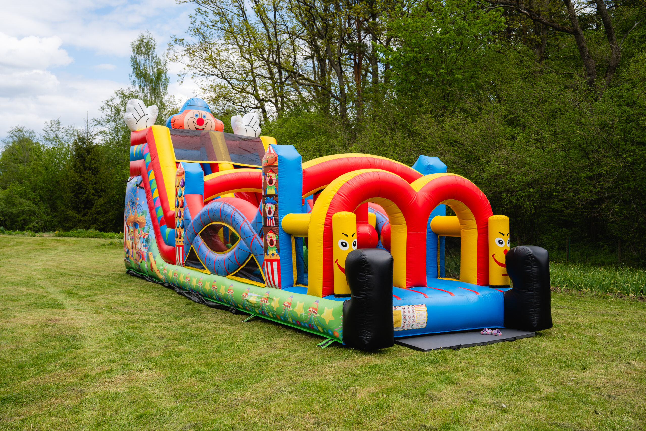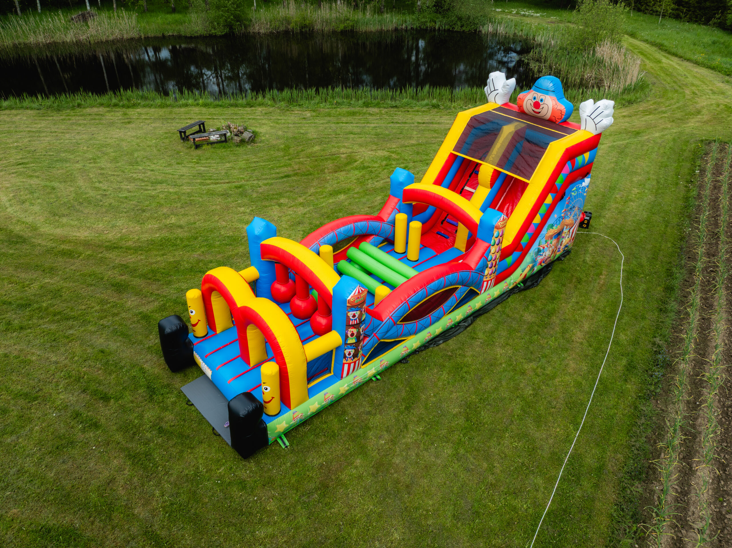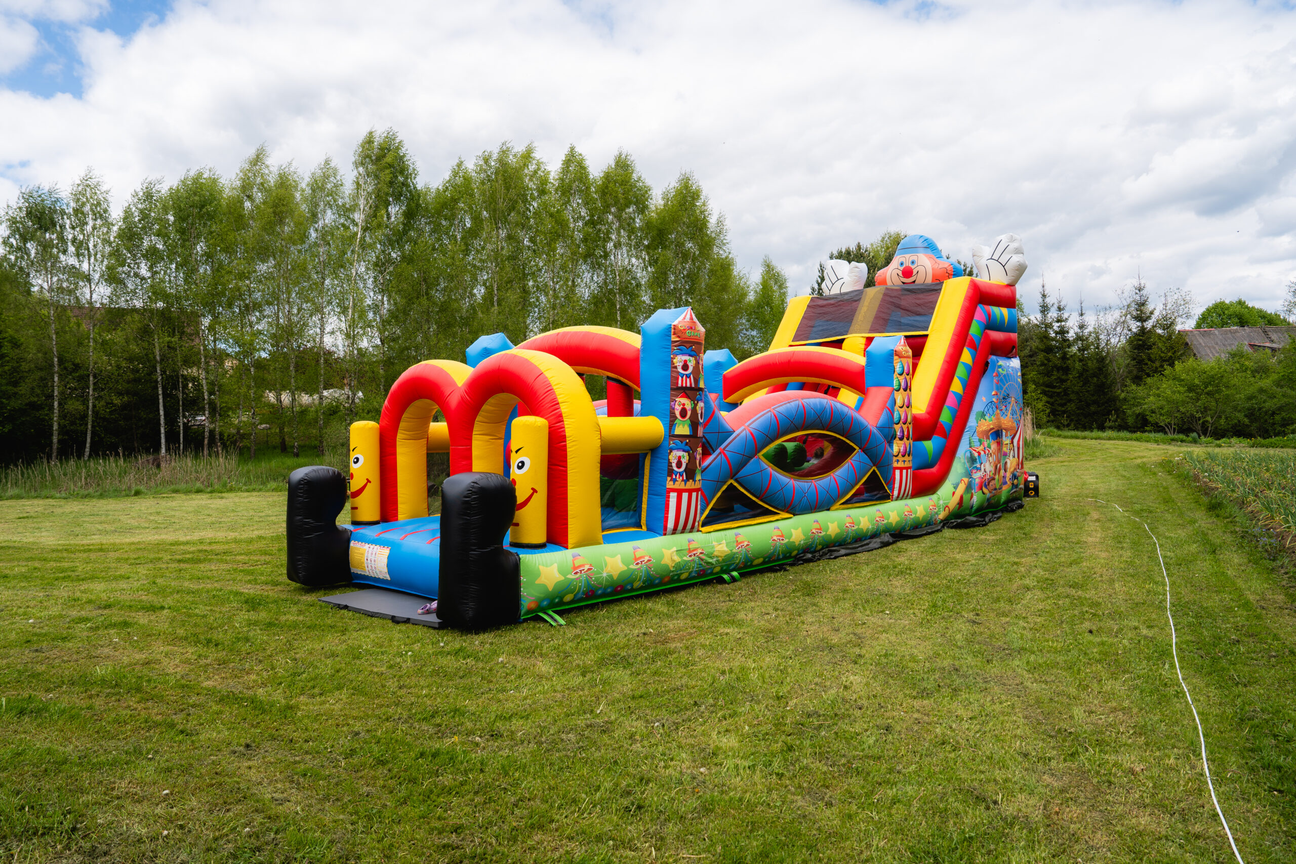 krāsainā cirks tematika łaus iejusties cirka pasaulē. Jautrais klauniñš aicina izbaudīt jautros škēršłus un doties uz 6m augsto kalniñu. Atrakcijai ir viena ieeja un tā pati ir arī izeja.