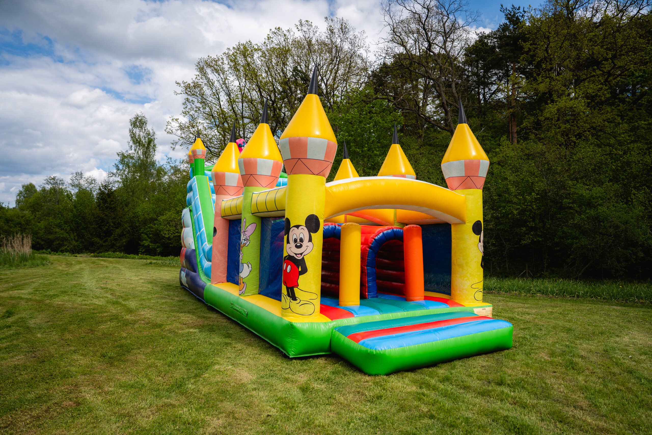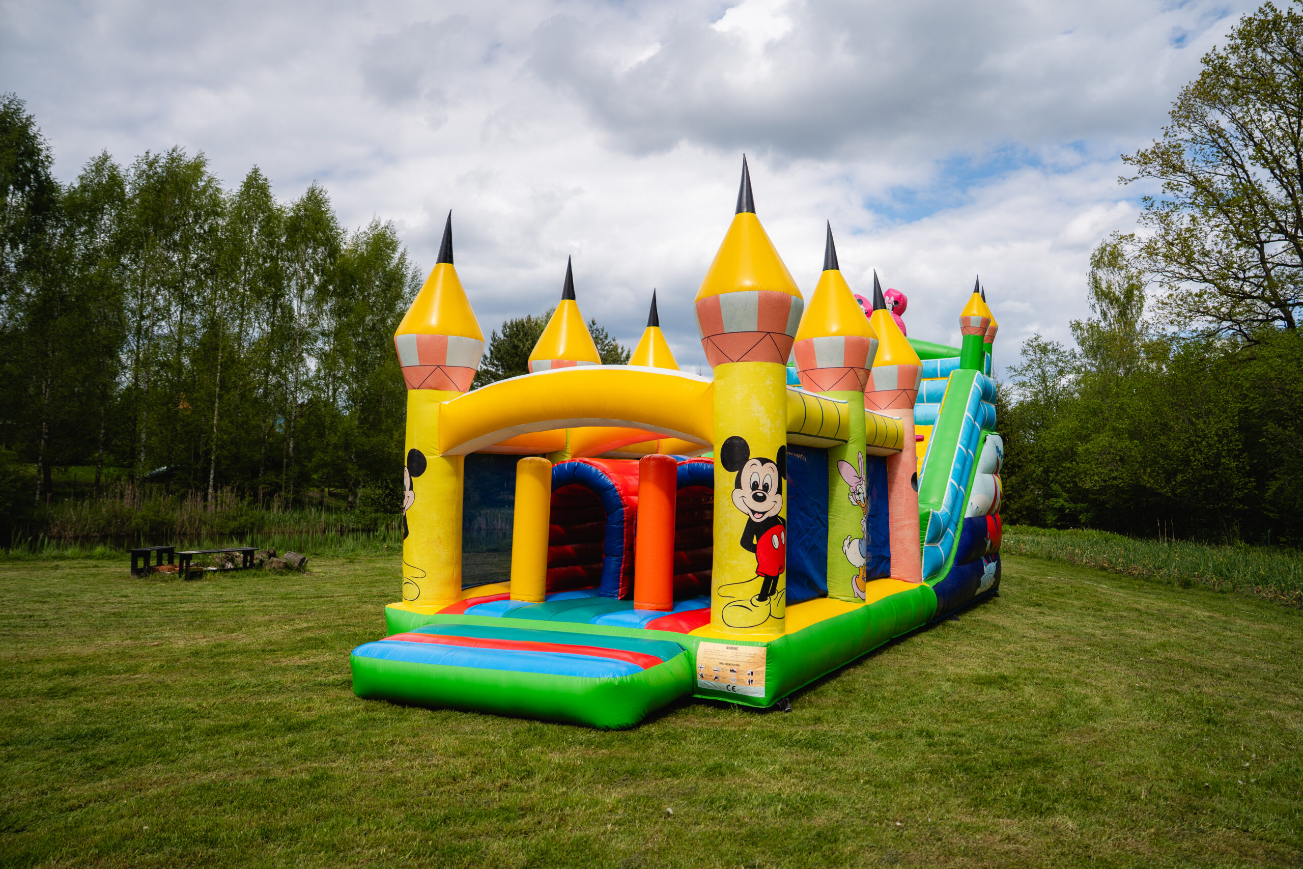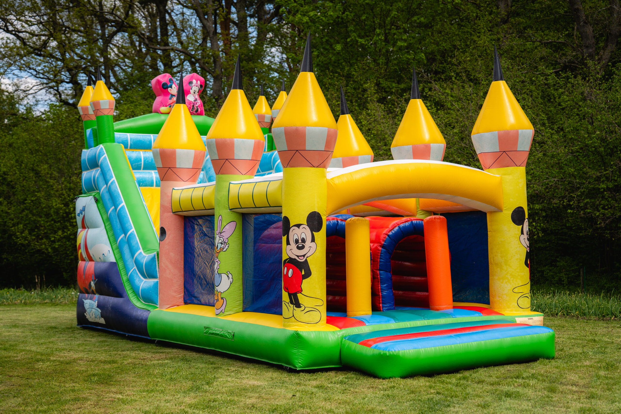 Jautrais un nebēdnīgais Mikijs ielûdz tevi uz savu jautrības un piedzīvojumu pasauli. Interesantie un košie šķēršļi tā vien aicina jautrā izklaidē. Atrakcijas galā 5m augstais nošļūciens pa Mikija jautro kalniņu. Atrakcijas garums 10.5m, augstums 5m in platums 4.5m.